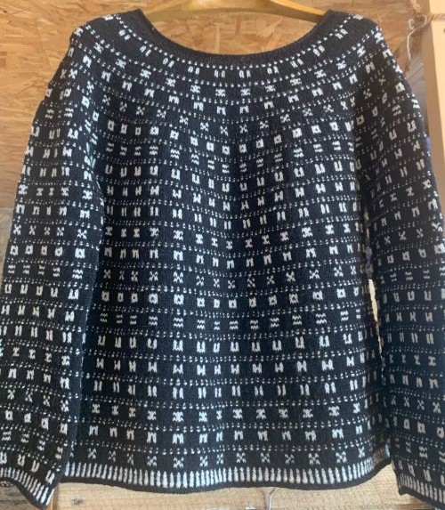 Anu Ahoniemi (@piippahankiainen) a choisi la laine Ouessant de Bouclelaine pour cette création en noir et blanc.